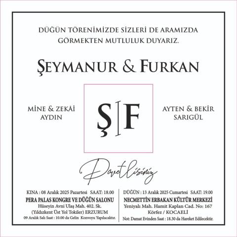 Her iki aile de bu mutlu günlerinde dost ve yakın çevrelerini yanlarında görmekten büyük mutluluk duyacaklarını belirtti.